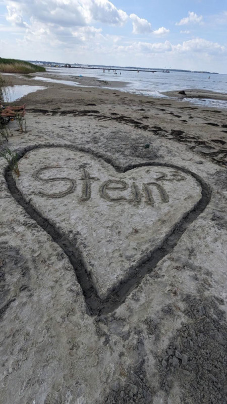 - Stein, direkt hinter dem Ostseedeich an der Kieler Bucht, ca. 3 km nordöstlich von Laboe