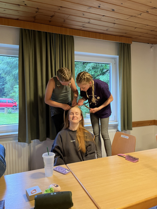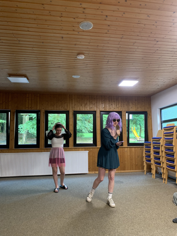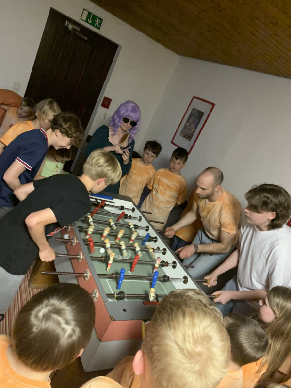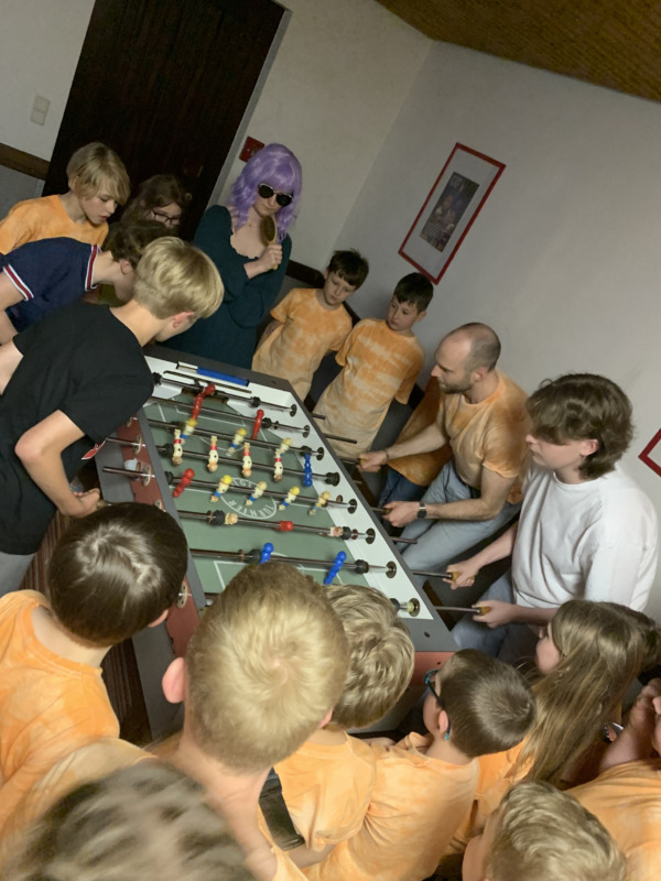 Der zweite Tag stellte uns vor einige Herausforderungen, da es fast den ganzen Tag regnete und wir das Außengelände nicht nutzen konnten. Abhilfe schafften Spiele wie Werwolf im Kaminraum, eine große Runde Scharade und verschiedene Turniere in Tischkicker, Jakkolo und Balancieren. Abends gab es ein weiteres Highlight: einen bunten Tanzabend mit Verkleidungen und Cocktails!
