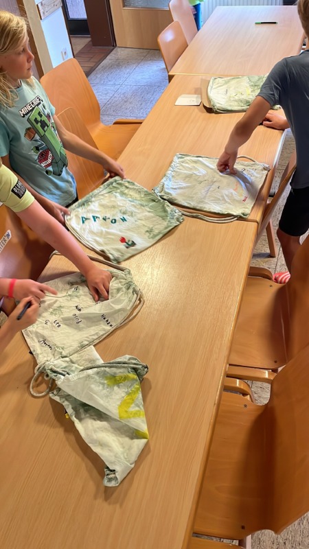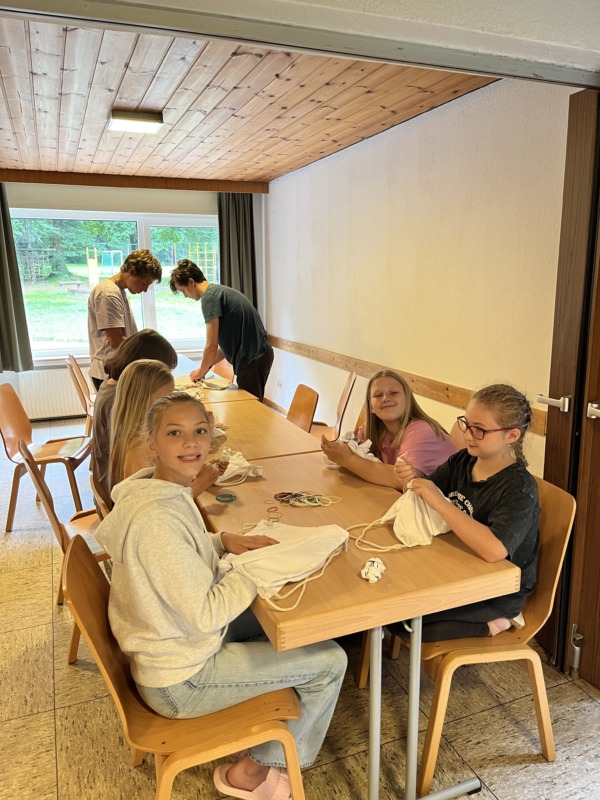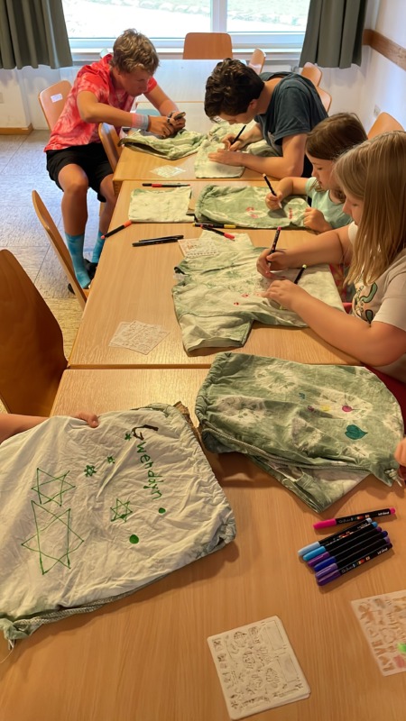 Dieses Jahr haben wir zum ersten Mal Beutel statt T-Shirts mit den Kindern gebatikt, die im zweiten Schritt auch noch individuell von den Kindern bemalt und beschrieben werden konnten. Ein tolles Andenken an die Freizeit, das alle Kinder mit nach Hause nehmen konnten. Darüber hinaus gab es wieder eine Kinderschmink-Station, bei der sich die Kinder vom Regenbogen übers Glitzer-Einhorn bis hin zum Minion jeden Wunsch erfüllen lassen konnten.