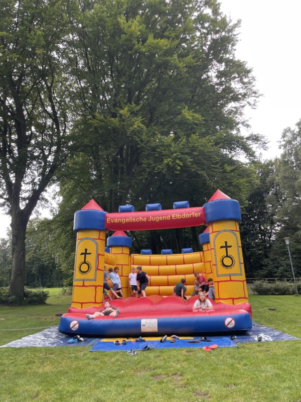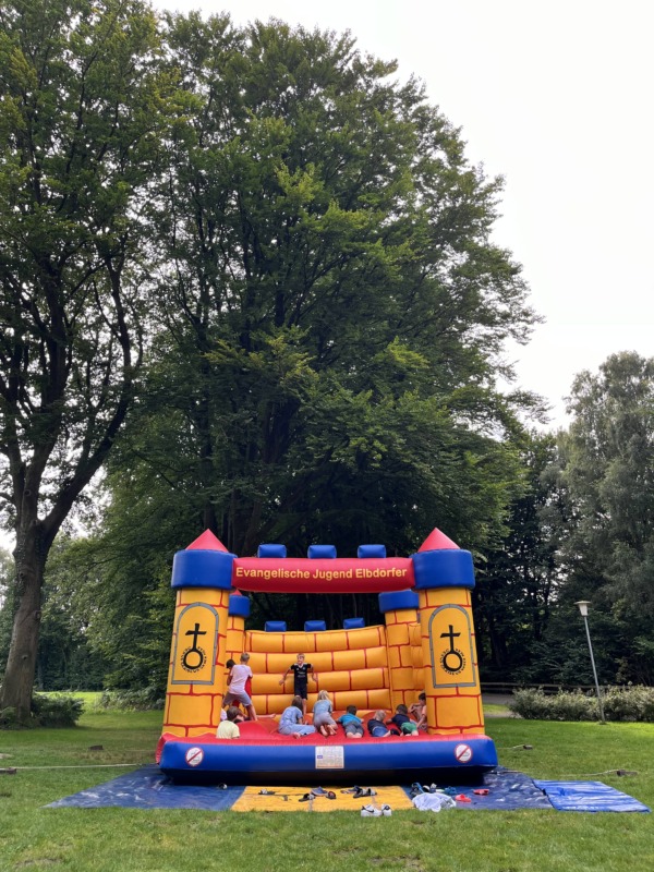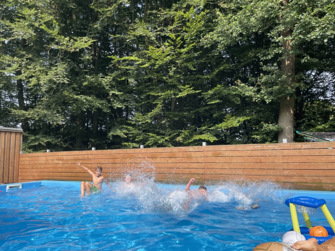 Auch wenn es dieses Jahr zwischendurch auch bewölkt und regnerisch war, haben die Kinder doch jede Minute genutzt, um in den Pool oder auf die Hüpfburg zu springen. Von „Rangel-Burg” bis „Chill-Burg” über „Wasser-Handball” bis hin zu „Wetttauchen” war für jeden Geschmack etwas dabei und alle Teilnehmenden hatten jeden Tag die Möglichkeit, sich auszutoben. Und wenn es mal eine Pool- oder Hüpfburgpause gab, ging es eben auf die Seilbahn oder aufs Fußballfeld für sportliche Partien mit Kindern aller Altersgruppen.